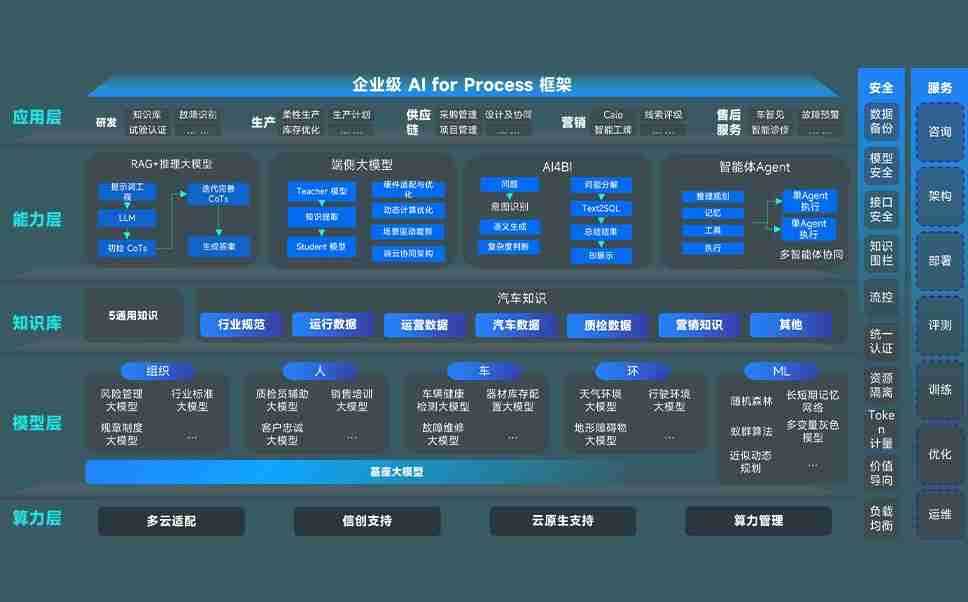 端到端的一站式AI工作空间深度融合了从企业战略规划到日常经营的全流程业务板块,,定向解决车企内部领域多、、、、部门多、、链条长、、、场景碎片化等难题,,,,支持车企快速构建以AI为核心的生产力写作体系,,实现任务执行与AI能力的无缝集成与交互